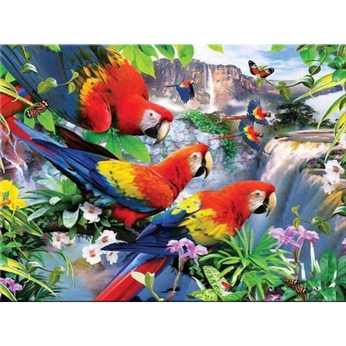 Pappagalli sopra la cascata